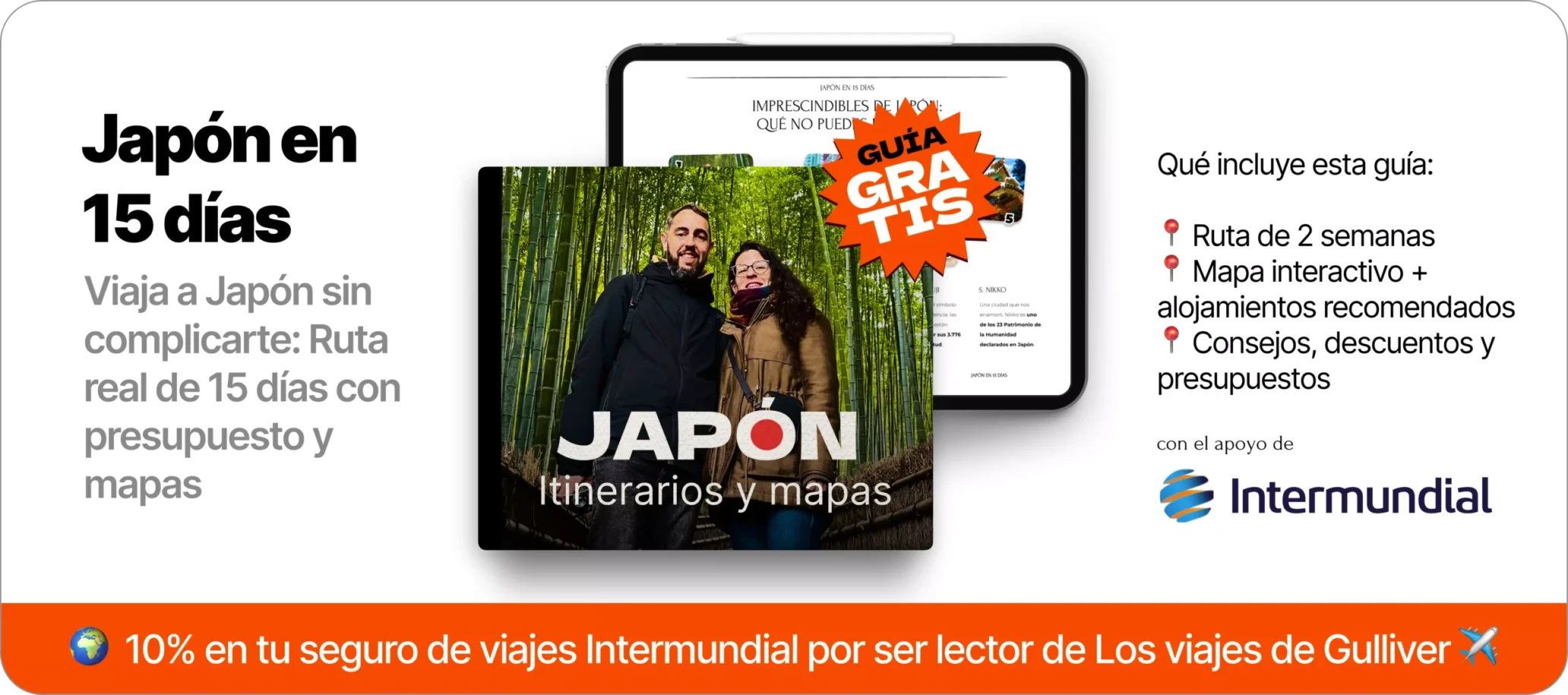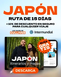 Descarga gratis nuestra guía en PDF de Japón, con itinerario real de 15 días, mapas y consejos para viajar por libre. Incluye un 10% de descuento en seguros de viaje, válido para cualquier destino.