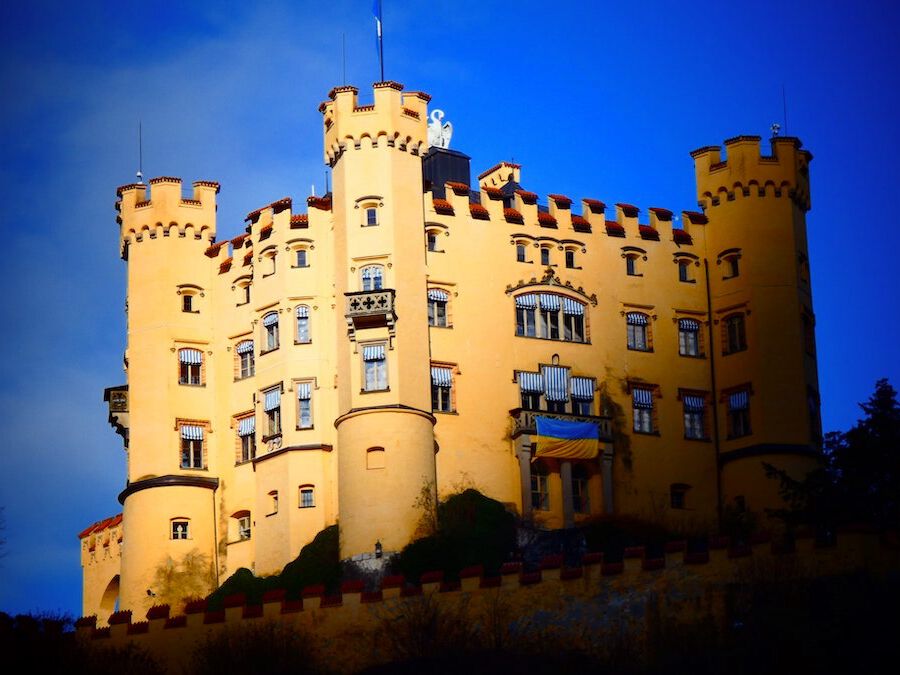 El palacio de Hohenschwangau fue residencia infantil del rey Luis II de Baviera. Construido sobre la antigua fortaleza de Schwanstein (siglo XII), este edificio cambió de manos en varias ocasiones durante siglos, hasta que el padre del Rey Loco, el rey Maximiliano II de Baviera, se enamorara del lugar y mandara reconstruirlo en 1833.