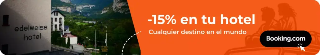 A la hora de reservar alojamiento, que nosotros aconsejamos a través de Booking. Si reservas con nuestros enlaces, puedes conseguir hasta un 15% de descuento en determinados alojamientos.